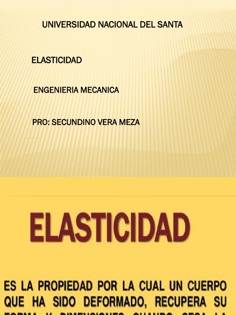 Es decir, δx α fext., (siempre y cuando se conserve la proporcionalidad lineal entre la fuerza y la. Se aplica a varios elementos tanto naturales como artificiales. En física, la ley de elasticidad de hooke o ley de hooke, originalmente formulada para casos del estiramiento longitudinal, establece que el alargamiento unitario que experimenta un material elástico es directamente proporcional a la fuerza aplicada. Elasticidad introducción hasta ahora en nuestro estudio de mecánica hemos asumido que los cuerpos son indeformables; Bioprofe | elasticidad y fractura | 14.
